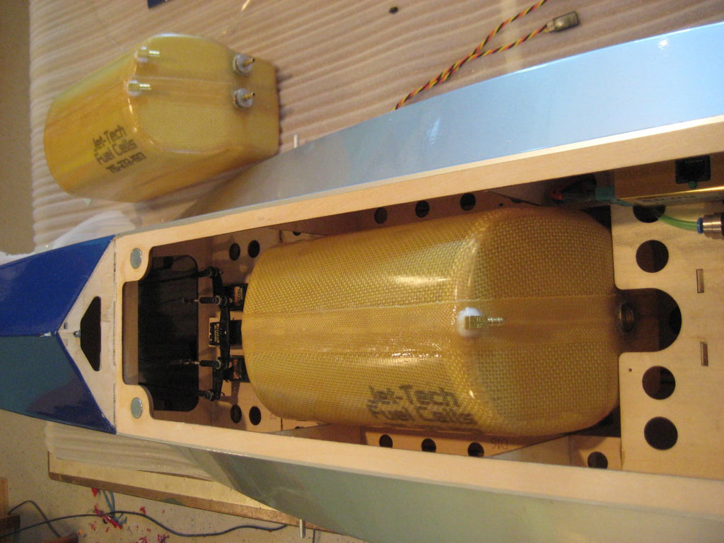 The tank comes fully assembled and pressure tested with standard 1/8" Jet Tech O-ring style fuel and vent fittings installed but does not include a clunk. Clunks may be ordered separately on the "fuel fittings" page.